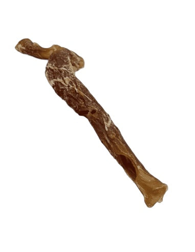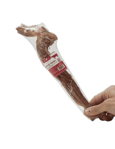 Snack natural elaborado con aorta de ternera 100 % deshidratada a baja temperatura, rica en colágeno, fósforo, calcio y vitaminas esenciales como A, B y B5. Un tentempié saludable, ideal para premiar o complementar la rutina diaria de tu peludo.