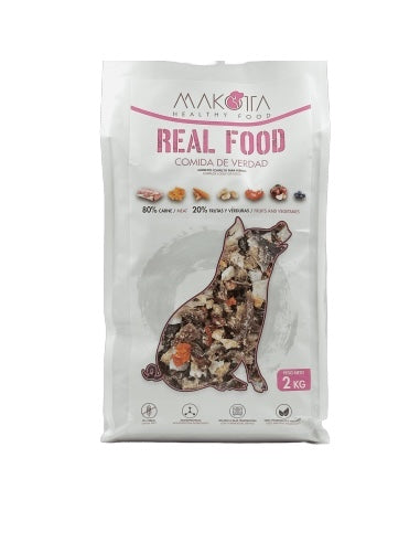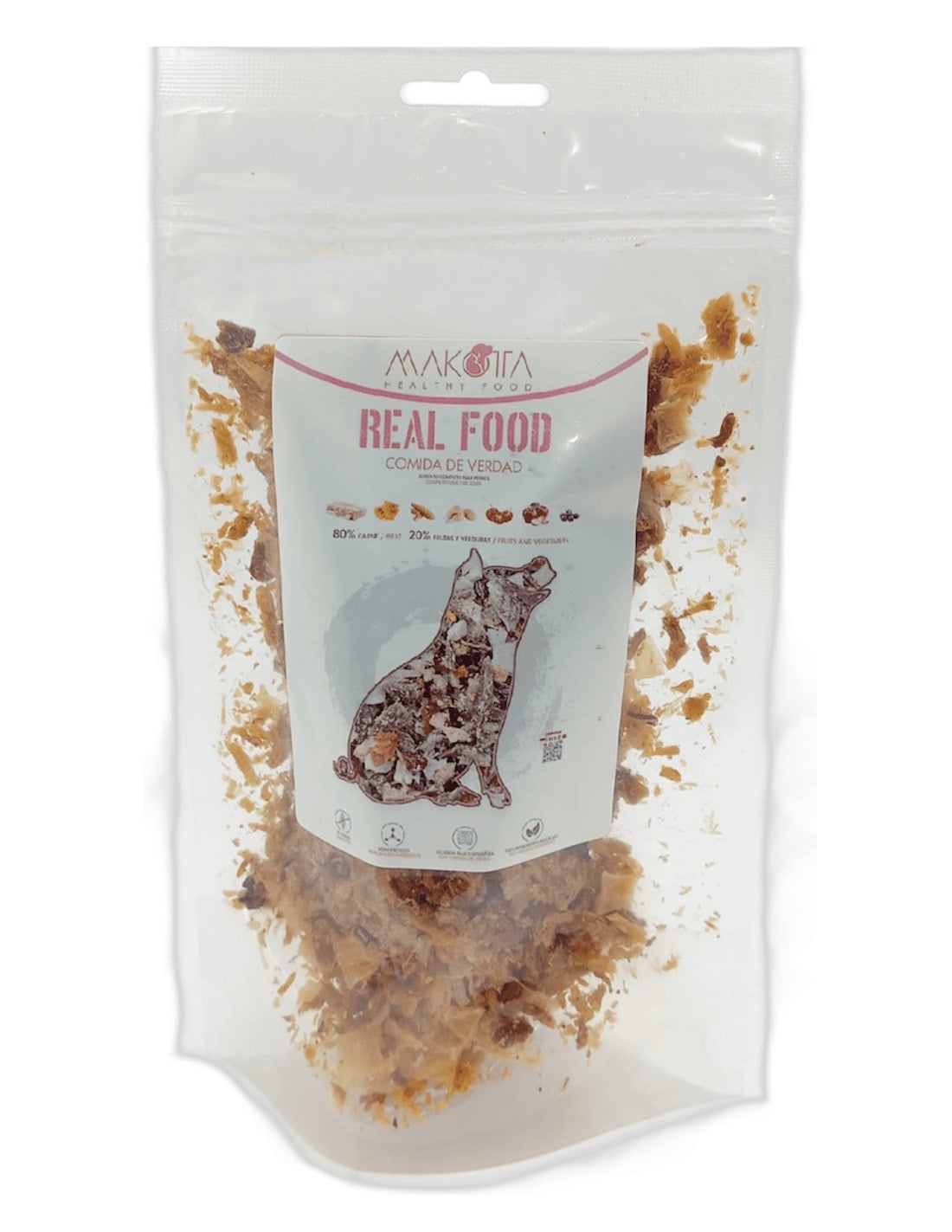 Lomos de cerdo deshidratado (mín. 80%), frutas y verduras (mín. 20%) de las cuales: patata deshidratada 18%, zanahoria deshidratada 4%, calabaza deshidratada 3%, tomate deshidratado 2%, frutos rojos (arándanos 1%), levadura de cerveza, extracto de tocoferoles (antioxidante natural), complejo vitamínico y mineral orgánico, complejo condroprotector (hidroclorato de glucosamina, sulfato de condroitina).