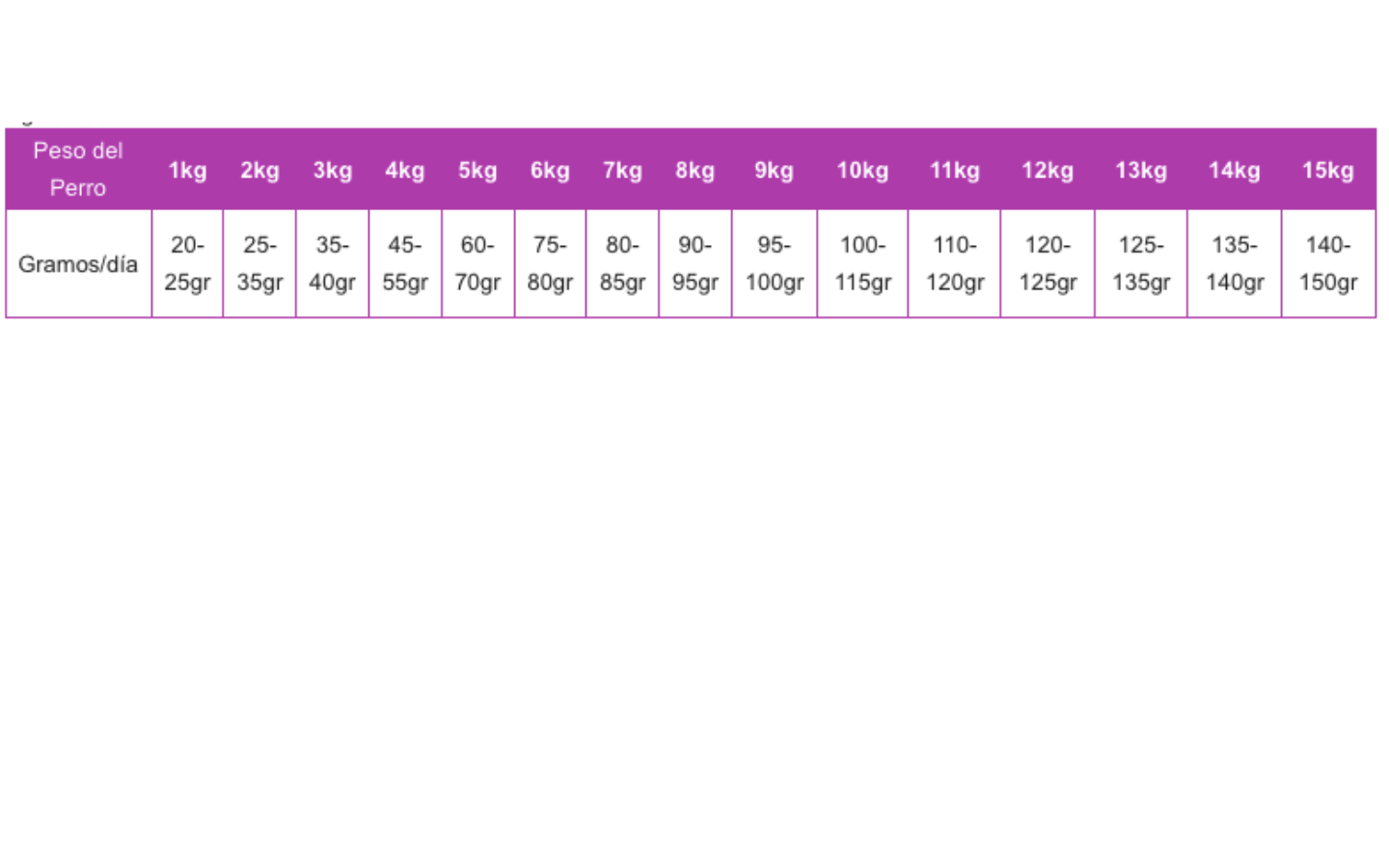 Suministrar en seco. En caso conveniente, añadir 1/2 del peso recomendado de agua tibia o caldo y esperar 15 minutos para su hidratación. Las cantidades diarias pueden variar según la raza, nivel de actividad y condiciones ambientales.