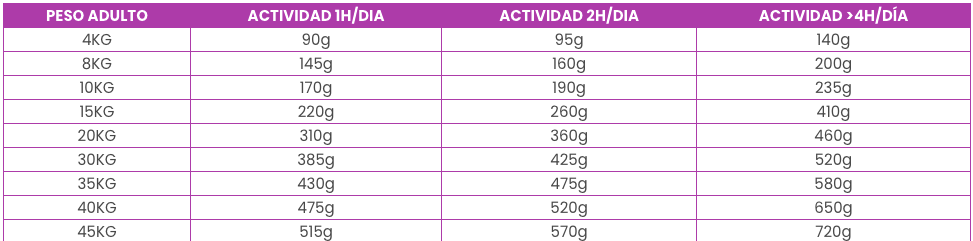 Perros adultos con alto gasto energético